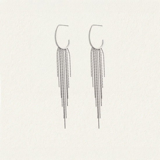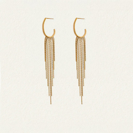 These long tassel hoops sway with every movement, catching the light like falling stars. Perfect for evenings when you want your presence to linger — elegant, modern, and just a little bit dramatic. A gift for someone who loves statement details, or a treat for yourself when you’re in the mood for a touch of glamour.