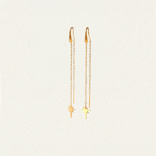 These slender threader earrings with a golden star charm sway like whispered wishes, carrying light closer to your heart. A delicate reminder that you’re never truly lost when you carry your own star. Wear them for a touch of quiet magic, or gift them to someone who’s been your guiding star.